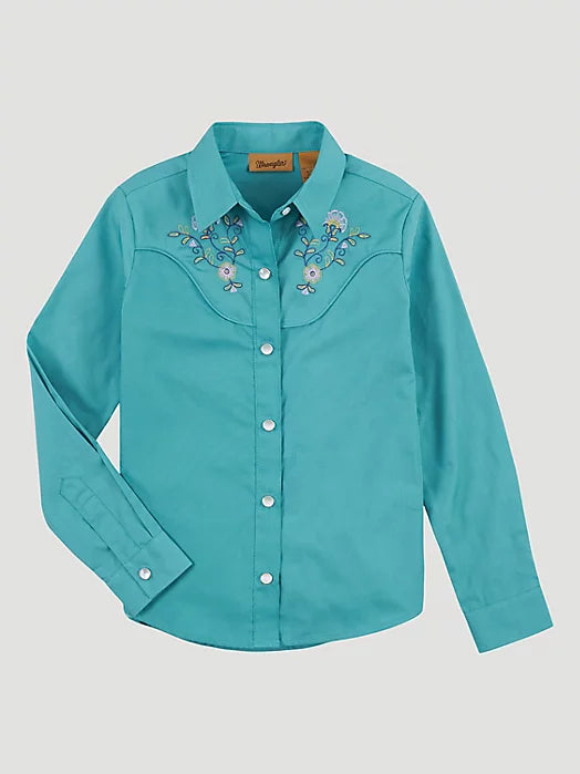 WRANGLER TEAL FANCY EMBROIDERED YOKE SNAP SHIRT