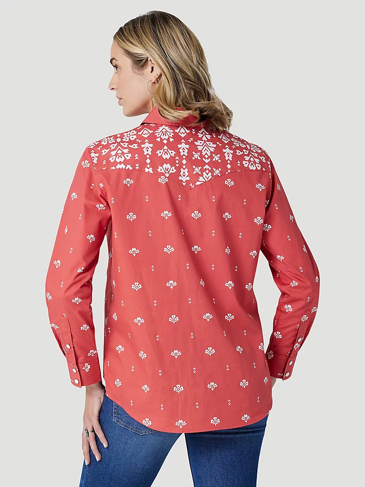 Wrangler Women's Red Retro Americana Bandana Western Snap Shirt